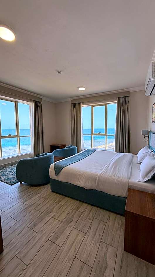 Featuring a private entrance, this air-conditioned suite is consisted of of 1 living room, 1 separate bedroom and 1 bathroom with a walk-in shower and a bath. The spacious suite offers a mini-bar, a tea and coffee maker, a seating area, a flat-screen TV with cable channels, as well as sea views. The unit offers 2 beds.